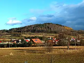 The Krucze Mountains (Czech: Vraní hory, German: Rabengebirge Polish: Góry Krucze) are the Eastern part of the Stone Mountains, which belong to the Central Sudetes on the border of the Czech Republic and Poland. To the West and North-Western part the mountain range borders the Lubawska Plateau and the Karkonosze Mountains, to the North-Eastern part they border the mountain range Czarny Las, from the East they border the sediment basin Kotlina Krzeszowska and the Zawory mountain range and to the South the mountain range borders the Czech part of the Stołowe Mountains. To the Southern ridge of mountain range is the Polish-Czech border. The border crossing for cars is in Lubawka and for tourists is in Okrzeszyn.[1]