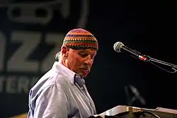 Jazz rock/jazz fusion Weather Report frontman and keyboardist Joe Zawinul wore kufi caps for a long time, both on stage with the band and outside of it, in his private/personal life. He is known for having changed various kufi models throughout the passing of time as well, as shown in the live performances of Weather Report from the 1970s and 1980s. Progressive rock Dutch legend Thijs van Leer also wore kufi caps during his early career with his band, Focus, in the 1970s. He can be seen wearing one in the music video for "House of the King" (also the theme song for the British TV show Saxondale). In addition, Rush drummer Neil Peart took to wearing a kufi during performances after touring Cameroon by bicycle in 1988.