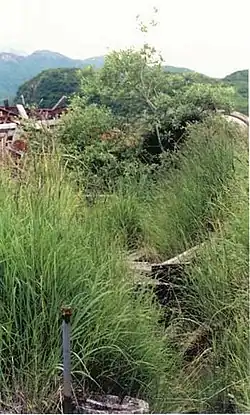 ![]() An overgrown boardwalk at the cannery site | |