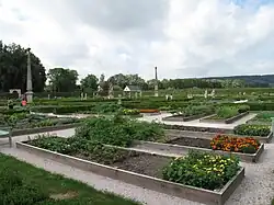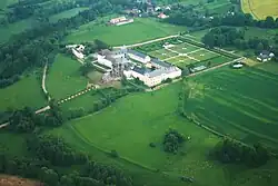 In 1696, he had built Chapel of the Assumption of the Virgin Mary, followed by chateau in front of it in 1710. In 1707–1715, the hospital and the Church of the Holy Trinity with the crypt were built. The interiors and exteriors were decorated with Baroque sculptures by Matthias Braun, the most famous of which are the Virtues and Vices. Behind the hospital there was a garden, and the whole complex was closed by a cemetery.[4]