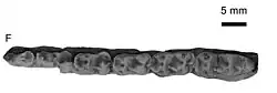 | Trionychinae indet.[27] | Chorlakki | Four fragments of pleural plates. | The fragments belonged to a shell reaching 30 cm in length and are similar to plates found in the Kala Chitta Hills and Lammidhan localities. | ||