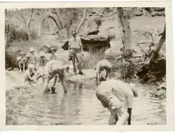 In December 1934 work on the pipeline finally begun and it was mostly constructed by Aboriginal men who often had to work at night to avoid the heat, it was backbreaking work.[1] The pipeline was completed on 30 September 1935 and, at the estimated time for the water to arrive, nothing happened and Pastor Albrecht passed a restless night until the water arrived the next day (1 October);[5] this is still celebrated as Kuprilya Day.[2][4]