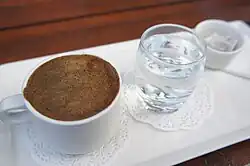 Kurdish coffee (Kurdish: (قاوەی کوردی) Qehweya Kurdî or Qehweya Kezwanan[1]) or menengiç coffee (Turkish: menengiç kahvesi), meaning pistachio coffee or terebinth coffee, is a traditional hot beverage in Kurdish[2][3][4][5] and Turkish cuisine.[6][7][8][9] It is made of ground roasted terebinth fruits (related to the pistachio) as the main ingredient, and is caffeine-free.[2][8] It is particularly popular in parts of Southeastern Anatolia.[10]
