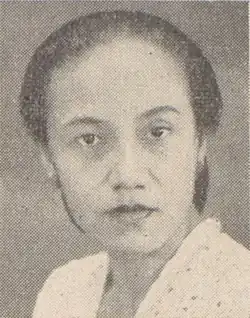 - ^ Until 1947, the Van Ophuijsen Spelling System was the orthography used for writing Indonesia's languages. Under this system, Kurnianingrat's name was written Raden Adjeng Koernianingrat Sastrawinata ([ra'dɛn a'dʒəŋ kʊrniaˈniŋrat sastrawi'nata]), as listed in Gunseikanbu (1943, p. 86). Among friends, Zainu'ddin (1997, p. 157) notes that she was known as Jo ([jo]), also written using the same spelling system.