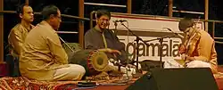 A katcheri of Carnatic music is generally of vocal music. The ambiance at a katcheri is "restrained and dignified" whereas in the case of the "mehfil" which represents concert format of the Hindustani music there is "characteristic abandon".[10] In this format the katcheris have attracted highly talented musicians in recent times and involved hundreds of musicians in the genre of vocal music, vainikas, instrumentalists playing violin, flute and so forth.[11] In the katcheri music format, songs are rendered in a medium and fast tempo. This compared to the Hindustani Concert, which is in a slow and very slow tempo, takes about half the time in rendering.[12]