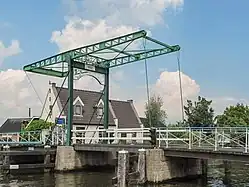 On May 20, 1884 a railway station was opened in Kwadijk, on the line Enkhuizen-Zaandam. Originally the station was known as Kwadijk-Edam. From May 15, 1935 it was named Kwadijk. Not for long, as the station was closed on May 15, 1938. An occasional train would still make a stop at Kwadijk until 1941.[7] Between May 1, 1906 and May 15, 1933 one could travel from "Kwadijk-Edam" railway station to Volendam and Edam by a steam-propelled tram, operated by the Hollandsche IJzeren Spoorweg-Maatschappij.[7] Some of the tram's right-of-way is still distinguishable in the landscape between Kwadijk and Edam. After its final closure, the structure of Kwadijk's railway station served as residential building, art studio, and warehouse. In 2010 the building was rehabbed into a modern office building, while preserving historical elements.[8][9]