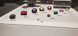 ![]() Kyawthuite sample on display at the Natural History Museum of Los Angeles County | |