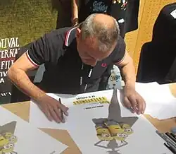 He started his career as an animator by working at Industrial Light & Magic, in films including The Mask as graphics animator, Jumanji as animation supervisor, and Mars Attacks! as character animator.[2] He also worked at Weta Digital once in New Zealand, on the 1996 film The Frighteners, animating the character of the Grim Reaper for the film.[2] Later Balda started working at Pixar; where he was credited as an additional animator in A Bug's Life, as directing animator in Toy Story 2, and as animator in Monsters, Inc..[2] He would later join French studio Mac Guff Ligne where he would work closely with Pierre Coffin on commercials and TV shows, as an animator or co-director.[5] This collaboration would lead to him becoming head of layout on Despicable Me. Balda has also directed several short films and lectured at different animation schools.[2]