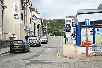 The village is the transport and shopping centre for the area as well as having a harbour and marina with pontoons for maritime visitors. The Plock offers a local woodland hike and viewpoint over the peninsula. The Plock was formerly home to a golf course.[2][3] It is owned by the Kyle of Lochalsh Community Trust, who also own the adjacent building which was formerly the toll building for the Skye Bridge.[4] The surrounding scenery and wildlife are regarded as attractions of the village, as is the slow pace of life. Crofting as well as more recent crofting pursuits like salmon farming are some of the activities taking place in Kyle of Lochalsh.