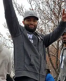 Wilson signed a two-year extension with the Blue Bombers in January 2021, keeping him with the team through the next two seasons.[6] He suffered a hip flexor injury in the first game of the season and did not play again until the end of September.[9] Wilson finished the regular season with 16 tackles over seven games played. Despite the injuries he was a key part of the team that wen to defend their Grey Cup title in the 2021 CFL Final against the hometown Tiger-Cats in Hamilton. Trailing 22-10, the defence would rally the team as they would go to overtime and take the lead 33-25. There, after a tip drill with two Blue Bomber teammates, Wilson caught the pass deflected to him by Winston Rose sealing his and the team's second consecutive title.[10] Wilson's father, step-mother, sister, and brother were all in attendance for the game and made their way down to the field to celebrate with him.[10] Considering the season and the title in the middle of the pandemic, Wilson said that "Sometimes when you’re not able to do certain things, your mind starts to wander or you start questioning whether you still want to do it, but we were all locked in. It just shows that no matter what you go through, there’s a light at the end of the tunnel. Some stuff might be tough, but it’s all going to work out in the end."[10]