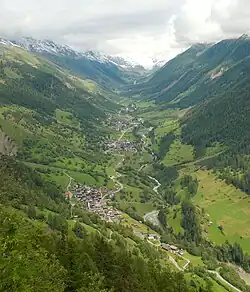 The Lötschental (German pronunciation: [ˈlœt͡ʃn̩taːl]) is the largest valley on the northern side of the Rhône valley in the canton of Valais in Switzerland. It lies in the Bernese Alps, with the Lonza running down the length of the valley from its source within the Langgletscher (lit.: Long Glacier).