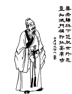 In the novel, Lü Boshe is a sworn brother of Cao Cao's father, Cao Song, so Cao Cao regards him as an uncle. Cao Cao and Chen Gong pass by Lü Boshe's house while they are on their way to Cao Cao's home after Cao Cao escaped from Luoyang following his failed attempt on Dong Zhuo's life. Lü Boshe gives them a warm reception and instructs his family and servants to treat the guests well while he travels to town to purchase more items for a feast. During their stay in Lü Boshe's house, Cao Cao overhears the sharpening of knives and a conversation among Lü Boshe's servants about whether to "kill or to tie up first". He suspects that Lü Boshe is pretending to be hospitable towards him while actually plotting to harm him. He and Chen Gong dash out and indiscriminately kill everyone in Lü Boshe's household. Later, they discover that the servants were actually talking about slaughtering a pig for the feast and that they had killed innocent people. As it is too late for regrets, Cao Cao and Chen Gong immediately pack their belongings and leave the house. Along the way, they meet Lü Boshe, who is returning from his errand. When Lü Boshe asks them to stay, Cao Cao asks him: "Who is that behind you?" When Lü Boshe turns around, Cao Cao stabs him from behind and kills him. A shocked Chen Gong asks Cao Cao: "Just now, you made a genuine mistake when you killed those people. But what about now?". Cao Cao replies: "If Lü Boshe goes home and sees his family members all dead, do you think he will let us off? If he brings soldiers to pursue us, we will be in deep trouble." Chen Gong says: "It is a grave sin to kill someone with the intention of doing so." Cao Cao remarks: "I'd rather do wrong to the world than allow the world to do wrong to me." (寧教我負天下人,休教天下人負我) Chen Gong does not respond and he leaves Cao Cao that night.[4]