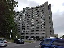 The opening of the MIL Campus generated controversy and attracted criticism from various community organizations in Parc-Extension, one of the poorest boroughs in Montreal.[35] In the fall of 2019, the opening of the campus was disrupted by the Parc-Extension Action Committee (CAPE) to denounce the increasing number of tenants who are evicted from their apartments to make more units available for students in the borough.[36] More recently, these organizations claimed that the arrival of the campus has encouraged a significant increase in evictions and rental prices in Parc-Extension.[35] Researchers from three Montreal universities – McGill University, Concordia University and Université du Quebec à Montreal – implemented the Parc-Extension anti-eviction mapping project in 2019, in collaboration with CAPE.[37] A report documenting the gentrification of Parc-Extension was published in June 2020 by the Parc-Extension anti-eviction mapping project and the CAPE. The authors conclude that the average rent for two-bedroom apartment ads between February and May 2020 was almost twice the estimates made by the Canada Mortgage and Housing Corporation in October 2019.[38][39] Organizations have also criticized the Université de Montréal for excluding the construction of student residences from the master plan of the new campus.[38]