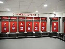 Adjoining the stadium is the leisure complex, which includes a 25-metre, six-lane swimming pool, a sports hall for netball, badminton and basketball, a gym with dance and spinning studios, an adventure sports zone and three 3G five-a-side pitches.[22] A community hub houses health and well-being services for York residents and visitors, including clinical services, an independent living assessment centre and a library.[22]