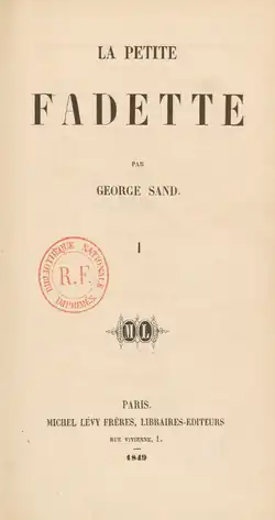 La Petite Fadette, also published in English under the titles Little Fadette. A Domestic Story (1849), Fadette. A Domestic Story (1851) and Little Fadette (1967),[1] is an 1849 novel written by French novelist George Sand, born Amantine Dupin. Sand wrote the rural story together with La Mare au Diable and François le Champi in the 1840s as she returned from Paris to the countryside of Châteauroux.[2] The novel is one of Sand's best known today.