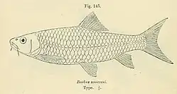 - ^ Banister, K. E. (1973). "A revision of the large Barbus (Pisces, Cyprinidae) of east and central Africa. Studies on African Cyprinidae. Part II". Bulletin of the British Museum (Natural History), Zoology. 26 (1): 111–115.
