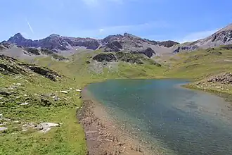 The lake can be accessed by hiking, starting either from the hamlet of Bourgea (1,950 metres (6,400 ft)) or from the refuge of Fonts de Cervières (2,040 metres (6,690 ft).