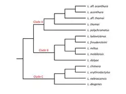 - ^ a b c d e Glon, Mael G.; Broe, Michael B.; Crandall, Keith A.; Daly, Marymegan; Kong, Sungsik; Thoma, Roger F.; Freudenstein, John V. (2022). "Anchored hybrid enrichment resolves the phylogeny of Lacunicambarus Hobbs, 1969 (Decapoda: Astacidea: Cambaridae)". Journal of Crustacean Biology. 42 (1): ruab073. doi:10.1093/jcbiol/ruab073.