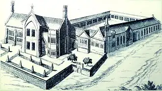 The former Blackfriars monastery is located on the eastern side of the street.[3] Also on that side, on land formerly occupied by Blackfriars, are three grade II* listed town houses at numbers 13,[4] 15[5] and 17,[6] and the former premises of Talbots Bottlers.[7] All three of the terraced houses incorporate parts of the rubble walls of Blackfriars in their cellars. Numbers 13 and 15 are mirror-image houses.