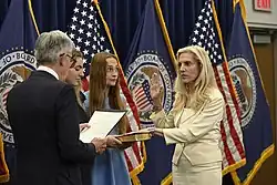 President Biden nominated Brainard to serve as Vice Chair of the Federal Reserve on November 22, 2021, succeeding Richard Clarida in the role.[4] On April 26, 2022, her nomination as Federal Reserve Vice Chair was confirmed by the U.S. Senate.[5] She was sworn in on May 23, 2022.[6] In February 2023, Biden announced Brainard as Brian Deese's successor as Director of the National Economic Council (NEC).[7] She resigned her positions as Federal Reserve governor and Vice Chair on February 18, 2023.[8] As NEC director, Brainard additionally served as chair of the White House Competition Council.[9]
