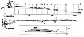 In planning the tunnel the shortest path from the lake to the outside was used consistent with the minimum downhill slope needed. The tunnel connects the lake with the adjacent crater of Ariccia, which was also occupied by a lake at that time and later reclaimed.