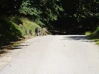 Today the Lainzer Tiergarten is home to between 800 and 1,000 wild boar, 200 to 250 fallow deer, approximately 700 European mouflons, and 80 to 100 red deer (elk).[2]