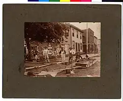 In June 1857, a town named Crystal Lake City was planned out on the southwest shore of Crystal Lake, but it failed to become reality. In October 1868, The Valley Railroad, later the Chicago, St. Paul, Minneapolis, & Omaha Railroad, was completed in the area. The railroad, after looking for potential locations, choose Lake Crystal for a new station. And so Lake Crystal began along the railroad, and was platted by Robinson and Hunt in 1869.[6] The railroads' engineer, General Judson W. Bishop of Saint Paul, named the town after nearby Crystal Lake.[7] A post office began operation in Lake Crystal in 1869.[8] By December 1, 1869, the town had a grain elevator, hotel, schoolhouse, grocery, drugstore, hardware store, two general stores, harness shop, cooper shop, and a doctor's office.[5] Lake Crystal was incorporated as a city on February 24, 1870.[6] Its first newspaper, The People's Journal, started in March 1870.[9] The period between 1870 and 1895 is generally known as the “Wheat Era”; most local farmers used nearly all their cropland for wheat. Lake Crystal's economy was adversely affected by the grasshopper invasion of 1873, when millions of grasshoppers devoured all the crops. The plague lasted until June 1877, when the grasshoppers fled. It took years to recover; only in 1882 were good quantities of wheat again marketed at the local grain elevator. In 1879, the Elmore railroad line was completed, with Lake Crystal as a junction between this line and the old main line. This rail line connected Lake Crystal to Garden City, Vernon Center, Amboy, Winnebago, Blue Earth, and Elmore. No fewer than 23 trains passed through town each day. In 1882, land was purchased from the railway for $100 and a new, two-story brick schoolhouse was built.[10] This building was added onto in 1895 and 1905 and demolished in 1972.[5] In 1885, a 16-man volunteer fire department was founded to combat several outbreaks of fire in the area. On September 20, 1887, a fire broke out at 3AM in the town's business block. A man was seen pouring gasoline throughout one of the buildings, then lighting it. Within a few hours the fire was under control; it was extinguished with the help of Mankato's Fire Department. This fire damaged and destroyed about seven buildings.[11] Also in 1887, All Angels Episcopal Church was built on the corner of Main and Howard Streets; it was torn down in 1964. In 1890 the United Methodist Church was built on the corner of Humphrey and Crystal Streets. In 1893 the Lake Crystal Boat Club built a boat pavilion at modern-day Robinson Park. The Boat Club also launched a steamship, the New Era, which is believed to have sunk near the lake's south shore.[12] Norwegian Lutherans built a church on the corner of Anna and Shepherd Streets in 1893, later renamed Zion Lutheran.[13] In 1894, the Graif Brothers Flour Mill was built, which marketed flour to Iowa, Wisconsin, Illinois, and Glasgow, Scotland. By 1895 Lake Crystal had over 1,100 residents.[5] In 1896, Catholics built their first church, on Humphrey Street.[14] In 1898, space was made for a new electric light plant between the Graif Flour Mill main building and engine room. Power-line poles also arrived and were installed along 16 streets. Lake Crystal received electricity in December 1898. The Welsh Calvinistic Methodist Church was constructed in 1899 on the corner of Prince and Crystal Streets.