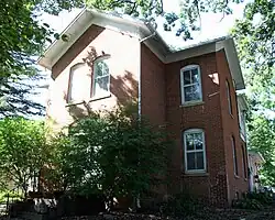 In 1853, two families from small towns near Ithaca, New York, left their homes and traveled west. One was 32-year-old William Riley Robinson. In June 1854 Robinson and his companion Lucius O. Hunt traveled from Wisconsin to Blue Earth County. Robinson and Hunt arrived and came upon the three nearby lakes, Loon, Crystal, and Lily, and marveled at their beauty. They returned for their families and headed back to settle in the Lake Crystal area. The families were joined by two other men and their families, Calvin Webb and Samuel Thorne. Robinson and his family settled in a log cabin on the south shore of Crystal Lake, a few feet south of where the Robinson House is today. Hunt and his family settled in a log cabin on the south shore of Lily Lake, where Holy Family Catholic Church is now. Each man took plots of land one mile long and half a mile wide (the dividing line being modern-day Main Street), the deeds to which were signed by President James Buchanan. Webb settled in the Judson Township, while Thorne took a claim on Crystal Lake. During the Dakota War of 1862 the settlers escaped to the fort at Mankato. Eventually the Dakota uprising was subdued and the settlers returned and rebuilt their homes. Hunt built a brick house in 1869 that was torn down in the mid-1900s, where Holy Family Catholic Church is today. Robinson built his brick house in 1870, which still stands as a historical building on Robinson Street.[5]