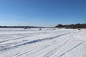 Lake DuBay is a reservoir on the Wisconsin River in Marathon and Portage Counties in the U.S. state of Wisconsin.[1] The lake covers an area of 6,700 acres (2,700 ha) and has a maximum depth of 30 feet (9.1 m). A dam on the lake is used to generate hydroelectric power.[2] The community of Knowlton is located on the shore of the lake, as are 122 homes and three parks. Interstate 39 and U.S. Route 51 provide access to the lake, as do several county highways.[3][4] While the lake is frozen in winter, it is used for ice racing by the "Winter Thunder Club".[5]