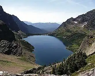 Lake Ellen Wilson is located in Glacier National Park, in the U. S. state of Montana. Lake Ellen Wilson is .25 miles (0.40 km) upstream from Lincoln Lake but is more than 1,300 feet (400 m) higher in elevation. A series of cascades including Beaver Chief Falls can be found between the two lakes.[2]