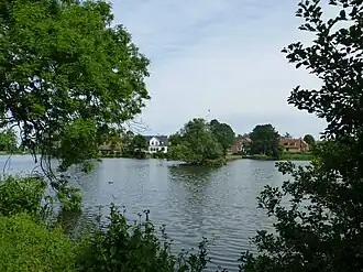 Lake Emdrup was long known as Lundehussøen after the Lundehus Kro, an inn located on Lyngbyvej.[3] The Caritas Well which was installed on Gammeltorv in 1608, was fed with water from Lake Emdrup.[4]