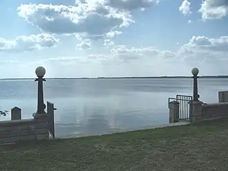 Lake Eustis is located in Central Florida, west of the city of Eustis. It covers approximately 7,000 acres (28 km2). It is spring fed and is a member of the Harris Chain of Lakes, and is connected to Lake Harris by means of the Dead River. It is also connected to the St. Johns River via Haines Creek to Lake Griffin, and the Ocklawaha River; and is connected to Lake Dora via the Dora Canal. The St. Johns River continues north to Jacksonville and the Atlantic Ocean, thus providing a connection from Lake Eustis to the Atlantic Ocean.