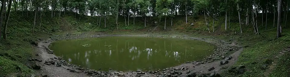 Kaali is a group of nine meteorite craters in the village of Kaali on the Estonian island of Saaremaa.[1] Most recent estimates put its formation shortly after 1530–1450 BC (3237 ± 10 14C yr BP).[2] It was created by an impact event and is one of the few impact events that has occurred in a populated area (other ones are: Henbury craters in Australia and Carancas crater in Peru).
