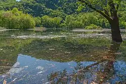 Located near the northern end of the flat sector known as Campo di Osoppo – Gemona,[N 1] north of the Venetian Plain,[3] at an elevation of 208 m above sea level, the lake lies at the foot of gentle, low hills (Monte Cumieli, 571 m above sea level) – which are the western extension of the Chiampon-Stol mountain range.