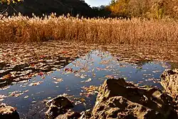 The floristic peculiarities closely tied to the presence of the lake include: floating mats (white waterlily and bulrush), sedge meadows (Carex elata), common club-rush, reed beds (common reed), mare's-tail, varieties of the genus pondweed, and other species typical of wetlands, some of which, despite their wide range, are considered rare.[5][9][10][11]