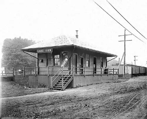 ![]() Lake View station in 1909. This building remained in use until the line's termination in 1963. | |||||||||||