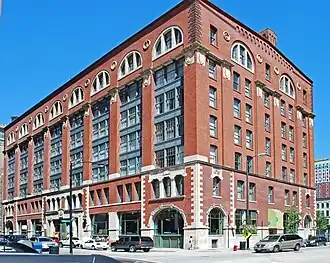 The Lakeside Press Building is a historic commercial building located at 731 S. Plymouth Ct. in downtown Chicago, Illinois. The building served as a showroom, office, and printing press for the Lakeside Press. The building was built in two stages; the southern half was completed in 1897, while the northern half was finished in 1901. Architect Howard Van Doren Shaw designed the building, his first design of a commercial building. Shaw's design features limestone quoins, piers, and decorations, curtain walls with cast iron spandrels on the floors housing the printing presses, and a projecting cornice.[2]
