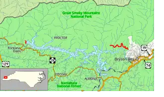 | | 6.5 | 10.5 | Fontana Road – Bryson City | ||