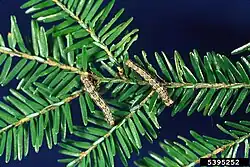 The larva feeds on Quercus and Fraxinus. The subspecies Lambdina fervidaria athasaria prefers Abies balsamea, Picea and Tsuga canadensis