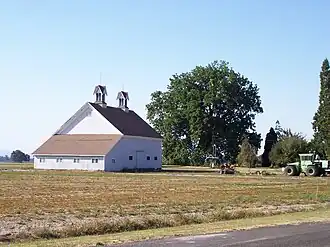 The barn is a 40 feet (12 m) by 60 feet (18 m) timber-frame building built in 1888. It was built to house horses being raised for fire and police departments of the Pacific Northwest. Its ornamented cupolas were assessed to be the finest in Linn County.[2]