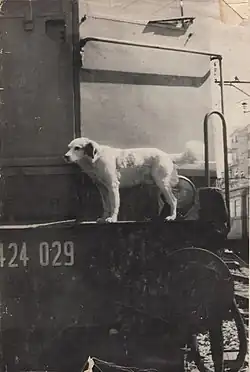 In August 1953, Lampo, then a stray dog, got off a cargo train at the Campiglia Marittima railway station in Italy and was adopted by the stationmaster Elvio Barlettani, despite the strict rail regulations against it.[2] Soon the dog had learned the train schedules, distinguishing the slow trains from the fast ones and how to get somewhere every day and return at sunset.[3] Almost every morning, he traveled by train from Campiglia Marittima to Piombino to accompany Mirna, the stationmaster's daughter, on her way to school. He then would return to Campiglia Marittima on a different train. He often boarded other trains, traversing by himself across the Italian railroad network, always returning to Campiglia Marittima.[4]