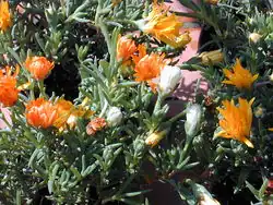 Lampranthus glaucoides, synonyms including Lampranthus aurantiacus,[2] known as the trailing iceplant (a name it shares with other members of its family Aizoaceae) and copper brightfig,[3] is a plant species in the genus Lampranthus native to South Africa and naturalized in gardens all around the world. It was first described by Adrian Hardy Haworth in 1795 as Mesembryanthemum glaucoides.[1]