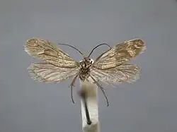 The wingspan is 12–15 mm.[2] Adults are on wing in May and June.