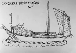 A lancaran or lanchara is a type of sailing ship used in Maritime Southeast Asia. Although similar in shape to Mediterranean galleys, the lancaran was the backbone of the regional fleet of the western half of Nusantara before Mediterranean influence came.[1]: 151 For their war fleet, the Malays prefer to use shallow draught, oared longships similar to the galley, such as lancaran, penjajap, and kelulus.[note 1] This is very different from the Javanese who prefer long-range, deep-draught round ships such as jong and malangbang. The reason for this difference is that the Malays operated their ships in riverine water, sheltered straits zone, and archipelagic environment, while the Javanese are often active in the open and high sea. After contact with Iberian people, both the Javanese and Malay fleets began to use the ghurab and ghali more frequently.[4]: 270–277, 290–291, 296–301 [1]: 148, 155