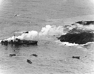 The landing at Amchitka on 12 January 1943 was the unopposed amphibious landing operation and occupation of Amchitka island by American forces during the Aleutian Islands campaign during World War II.[1]