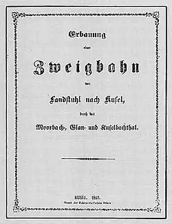 According to a memorandum published in Kusel in 1861, the line would run from the Palatine Ludwig Railway through Mohrbach, Glan and Kuselbach to Kusel.