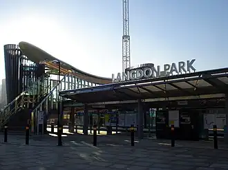 Langdon Park is a Docklands Light Railway (DLR) station in Poplar in London, England. The station is between All Saints and Devons Road stations on the Stratford-Lewisham Line. Construction of the infill station began on 17 November 2006,[7] and the first day of operation was 9 December 2007.[8][9]