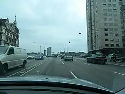 Langebro (lit. 'Long Bridge') is a bascule bridge across the Inner Harbour of Copenhagen, Denmark, connecting Zealandside H. C. Andersens Boulevard to Amagerside Amager Boulevard. It is one of only two bridges to carry motor vehicles across the harbour in central Copenhagen, the other being Knippelsbro.