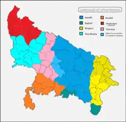 ![]() A linguistic map of Uttar Pradesh | |