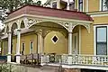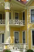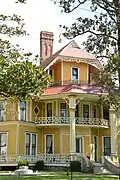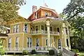 The Lapham–Patterson House is a historic site at 626 North Dawson Street in Thomasville, Georgia. The house, built between 1884-85 as a winter cottage for businessman C.W. Lapham of Chicago, is a significant example of Victorian architecture. It has a number of architectural details, such as fishscale shingles, an intricately designed porch, long-leaf pine inlaid floors, and a double-flue chimney. Inside, the house was well-appointed with a gas lighting system, hot and cold running water, indoor plumbing, and modern closets. Its most significant feature is its completely intentional lack of symmetry. None of the windows, doors, or closets are square. The house is a Georgia Historic Site[3] and is also a National Historic Landmark, designated in 1973 for its architecture.[4] It is also a contributing building in the National Register-listed Dawson Street Residential Historic District.
